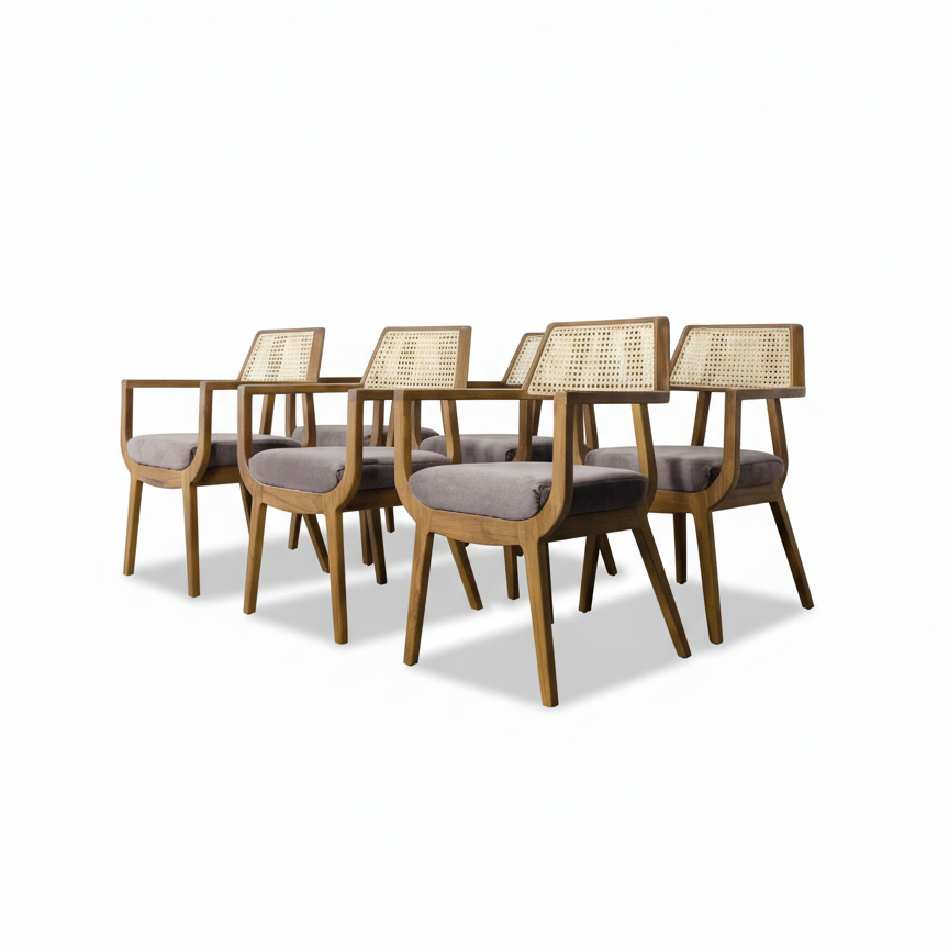 Kursi Makan Yano | Kursi Jati Minimalis Modern Dengan Rotan