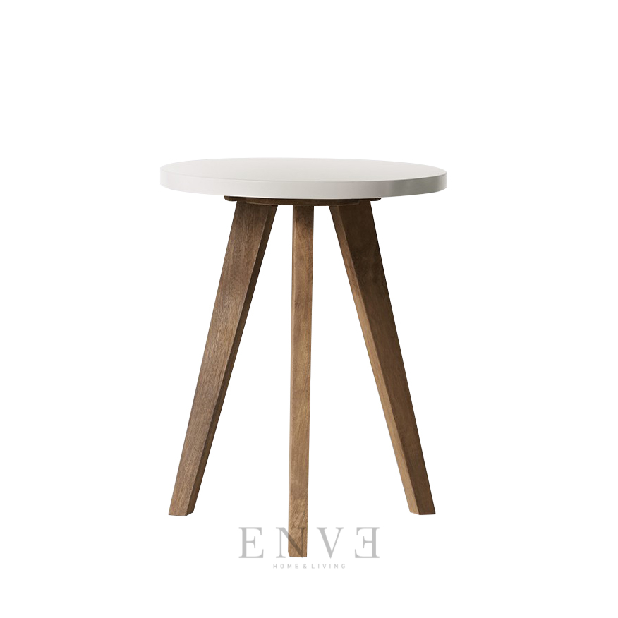 Meja Eddison - Meja Sudut Kayu Jati Minimalis Top Bulat
